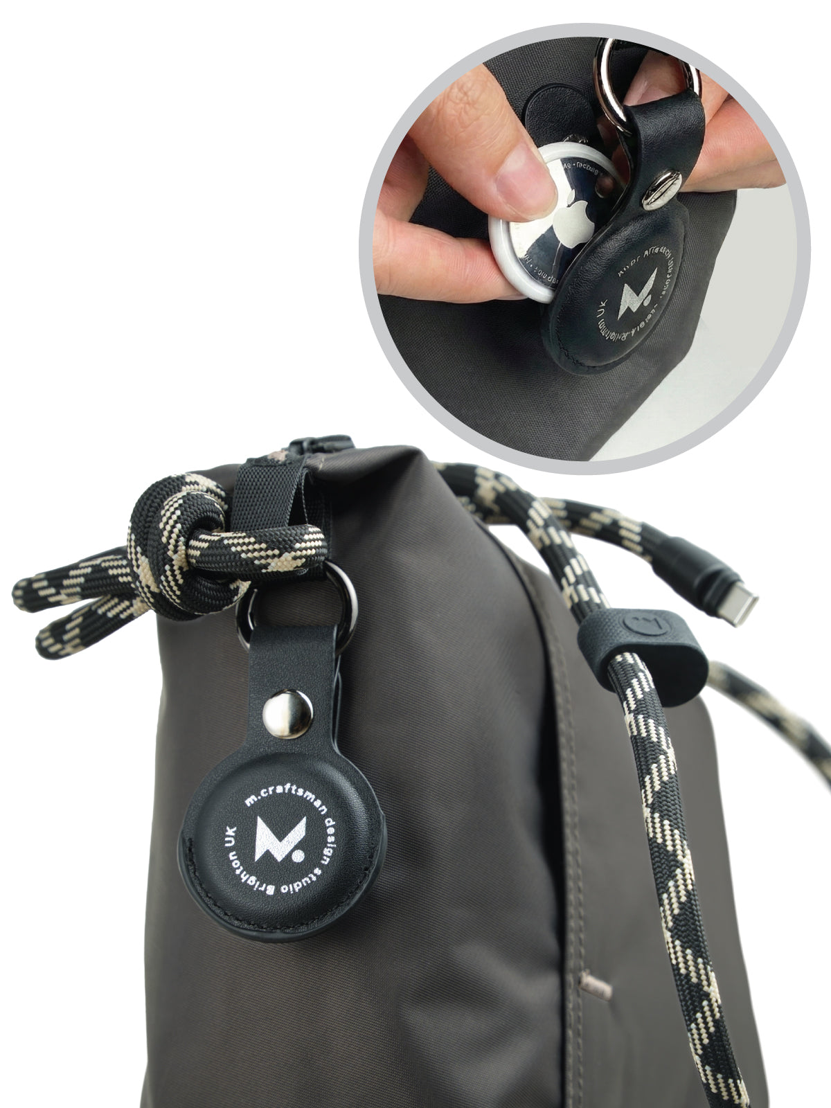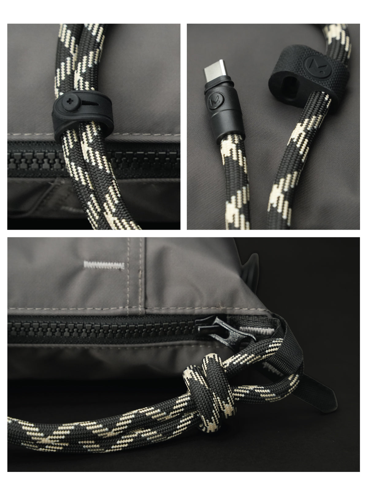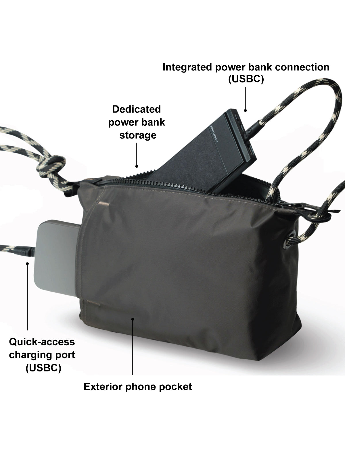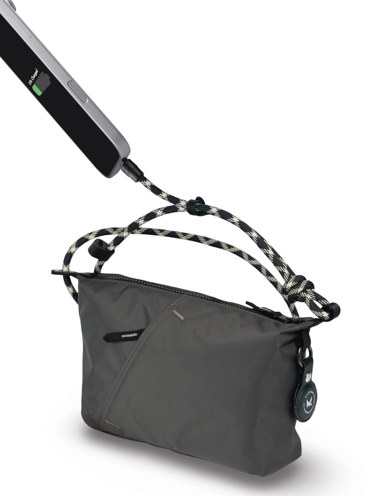 · Equipped with a 8 mm USB-C to USB-C connection, it functions effortlessly as both a refined shoulder strap and a high-performance charging cable.